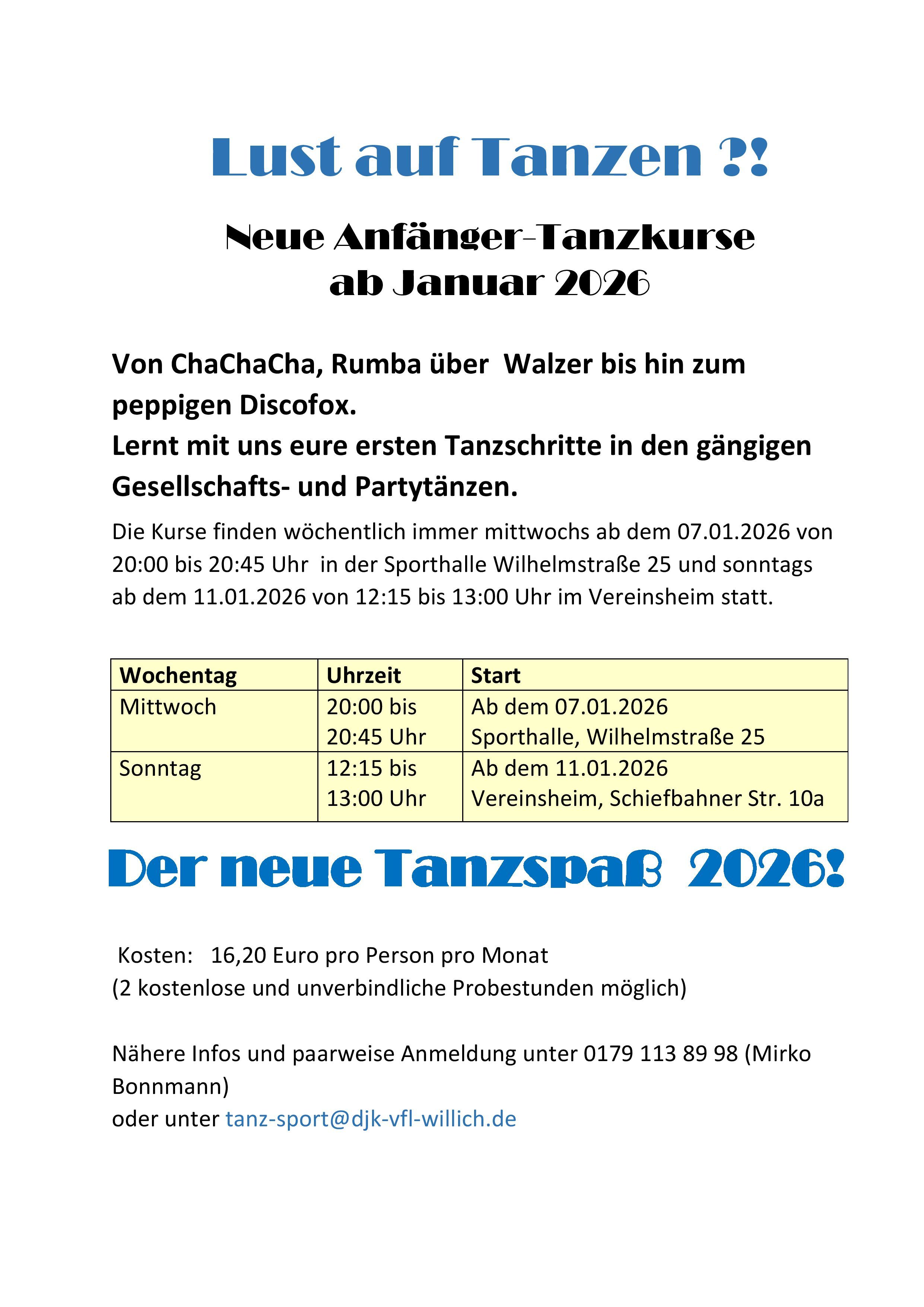 Neue Anfänger Tanzkurse für Paartanzen 2026